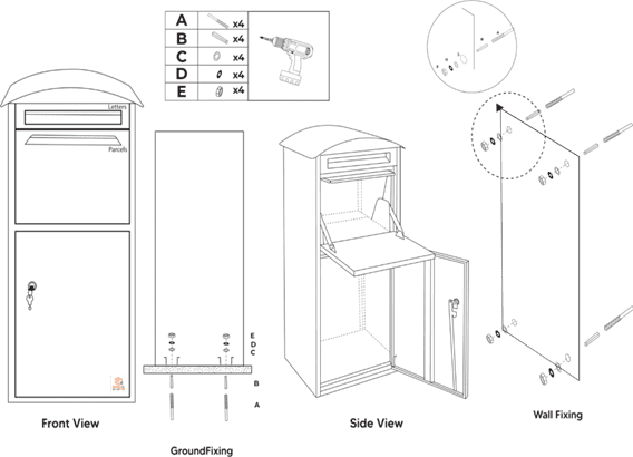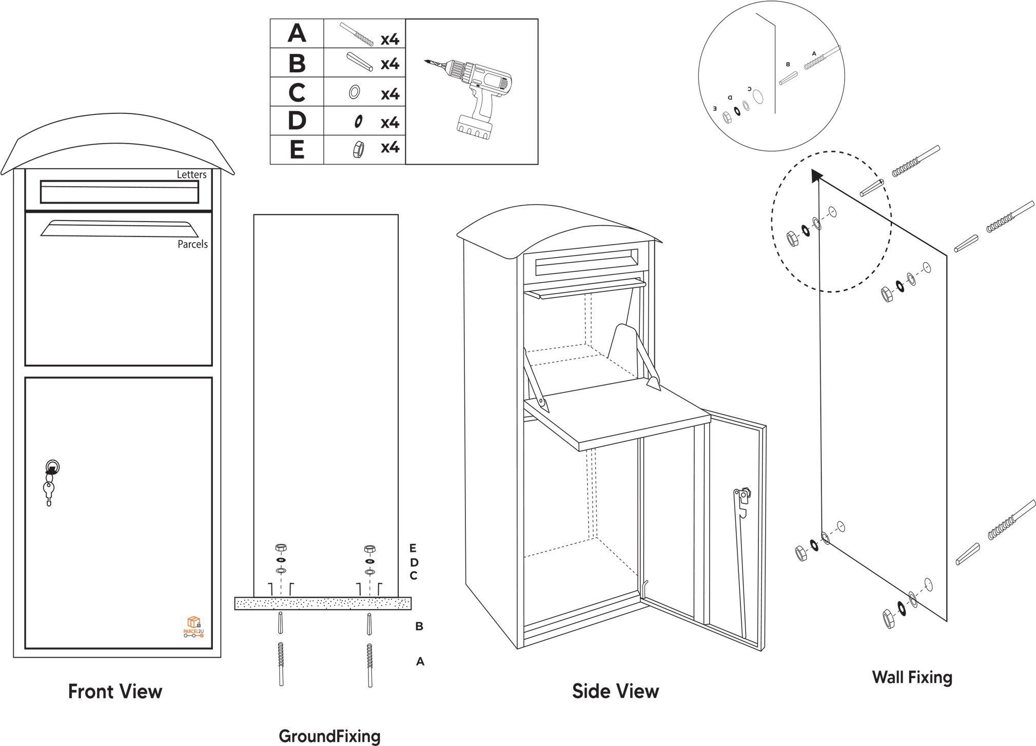 Important Note: The provided fixings may not suit all wall or ground types. Please ensure you use suitable materials for your property. If installing into the ground, a concrete base is recommended for added stability.